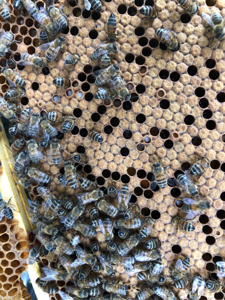 In late August we took all the supers off the Brecon and Radnor Association beehives and treated them for Varroa. We noticed that WBC2 had successfully requeened following a supercedure. The old queen was marked red the colour of 2018, so she had had a pretty good life and interestingly the colony hadn’t attempted to swarm (even though she had a wing clipped). We have had two supers of honey from WBC2 this year as well. Maybe this is a good colony to breed from??