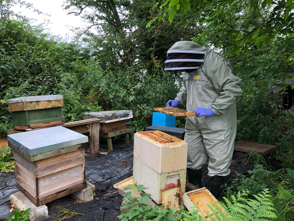 The current situation with lockdown as a consequence of the pandemic COVID19 has seen the use of online technology come into its own. There have been some excellent webinars on beekeeping given by experienced beekeepers, and I take a lot from these, but often there’s something missing in the communication, the empathy, and the attitude much as I love them. What I’m trying to say is that there’s nothing like experiencing it yourself, doing it, trying it out, and importantly reflecting on the experience. This period of time has allowed me to spend almost everyday with the bees and with the nature that surrounds me. Although I have been keeping bees for many years, it is my continual learning by doing that keeps my interest, my obsession. As well as doing many things, I also observe the bees, having a chair in each of my apiaries just to sit and watch whats going on. I also love reading related books and recently read Ken Pickles book ‘Buckets of honey from boxes of bees‘ in which he writes about his experiences as a beekeeper in Wharfedale. ‘Don’t believe what you read in the books’ is the mantra…well of course who does? Its about reference and comparison to your own experiences…..