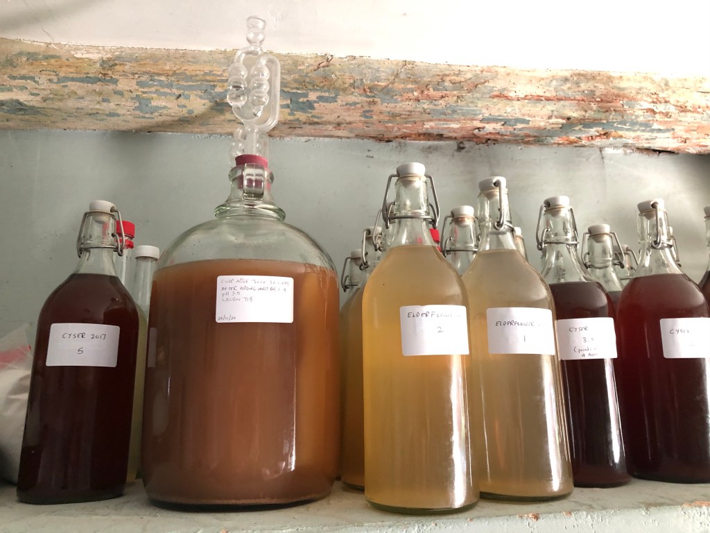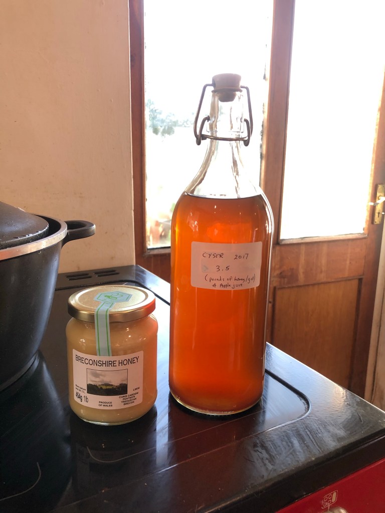 I picked a load of cider apples and got them juiced locally at 45p a litre (raw juice not bottled and pasteurised £1.26/litre). I started 20 litres of cider and 15 litres of Cyser. Cyser is apple juice mixed with honey and fermented. I have a fantastic book on cider making that explains everything about craft cider making, but in particular how acidity and sugar by weight (SG specific gravity) along with the many yeasts that accompany the apples can affect the final product in many different ways. ABV is alcohol by volume and a quick way to measure ABV is to take the SG at the start and subtract the SG at completion of fermentation then divide by 8. So if the SG at the start is 1.050 and after fermentation is 0.99, ABV = (1050-990)/8 = 7.5%