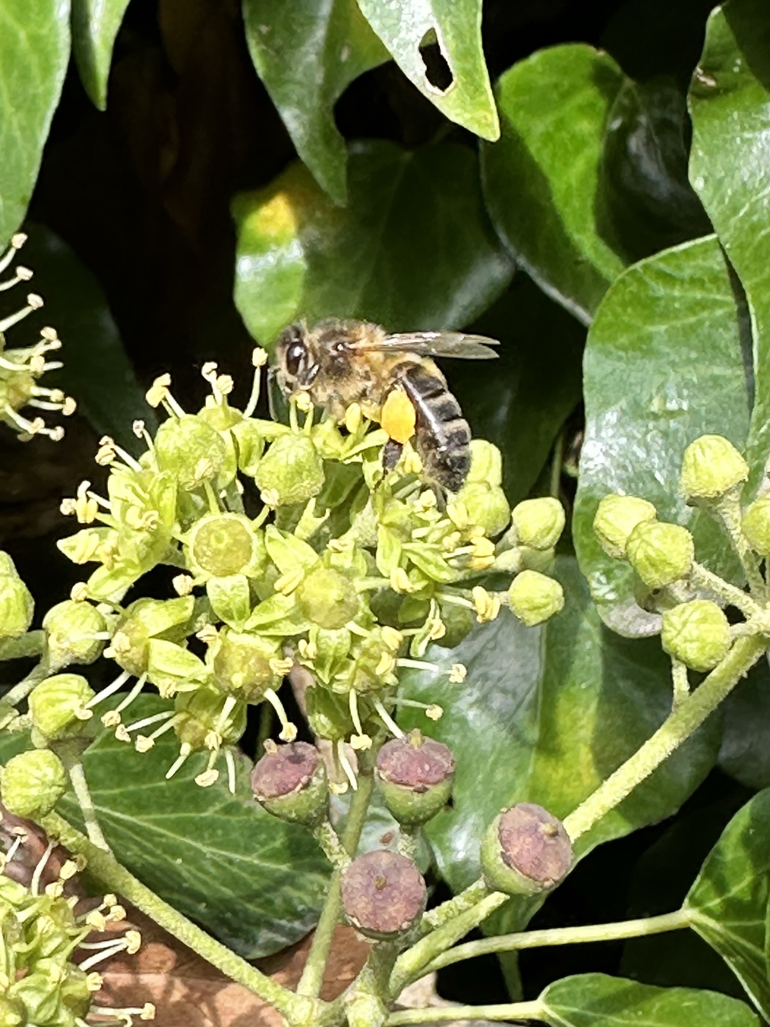 Later on into September 2024, the Hedera helix (Ivy) offered pollinators pollen and nectar, producing nectar for 5-6 days. The bees took this opportunity to bolster their stores.